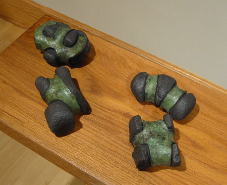 In his work, Freeland offers metaphors to reorient the viewer to nature, environment, and the basic rituals of living. His sculpture can be seen as a re-evaluation of the 19th century processes of bending wood and working with stone and steel.
